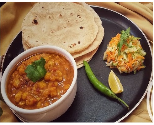 3 Carrot Chapati, Aloo Gobhi, Achari Dal, Chana Salad, Curd