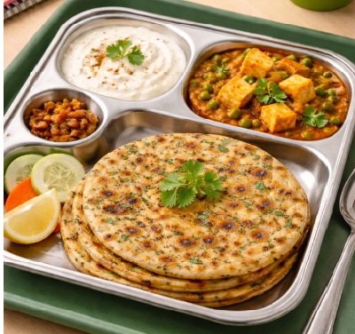 Chapati Meals: 3 Palak Chapati, Aloo Jeera, Dal Fry, Cucumber Salad, Curd
